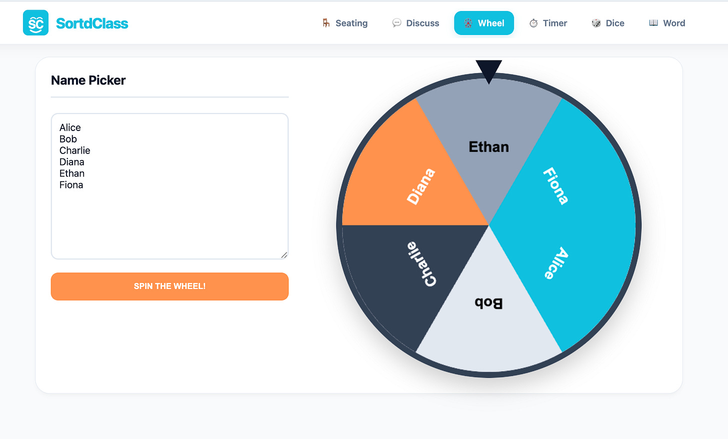 🎡 Name Picker Wheel: A quick, fair, and fun way to pick students for answers or tasks.