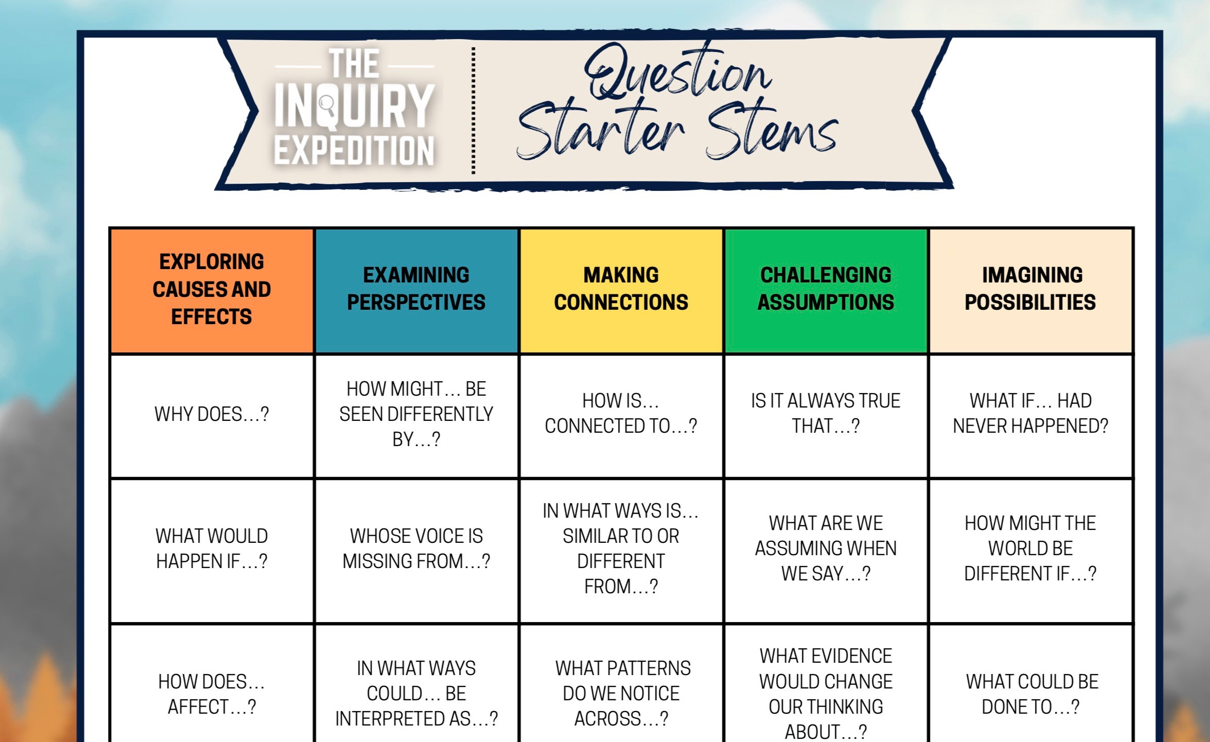 The full Question Starter Stems Card — five categories, fifteen stems, designed for classroom display — is available free at the end of this post. Download it and keep it. It is the tool behind everything in this post.