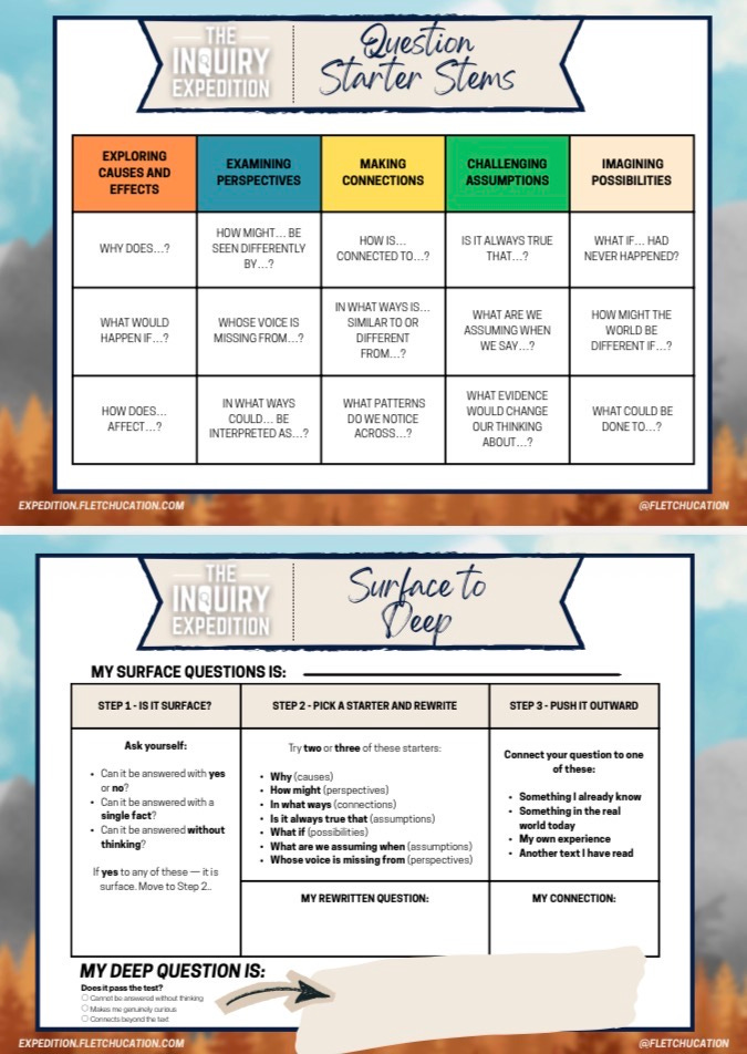 The surface to deep questioning framework is explored in depth in The Inquiry Expedition: A Field Guide to Student Readiness, coming soon. Join the waitlist at expedition.fletchucation.com or subscribe here.